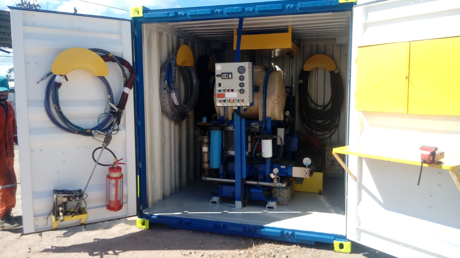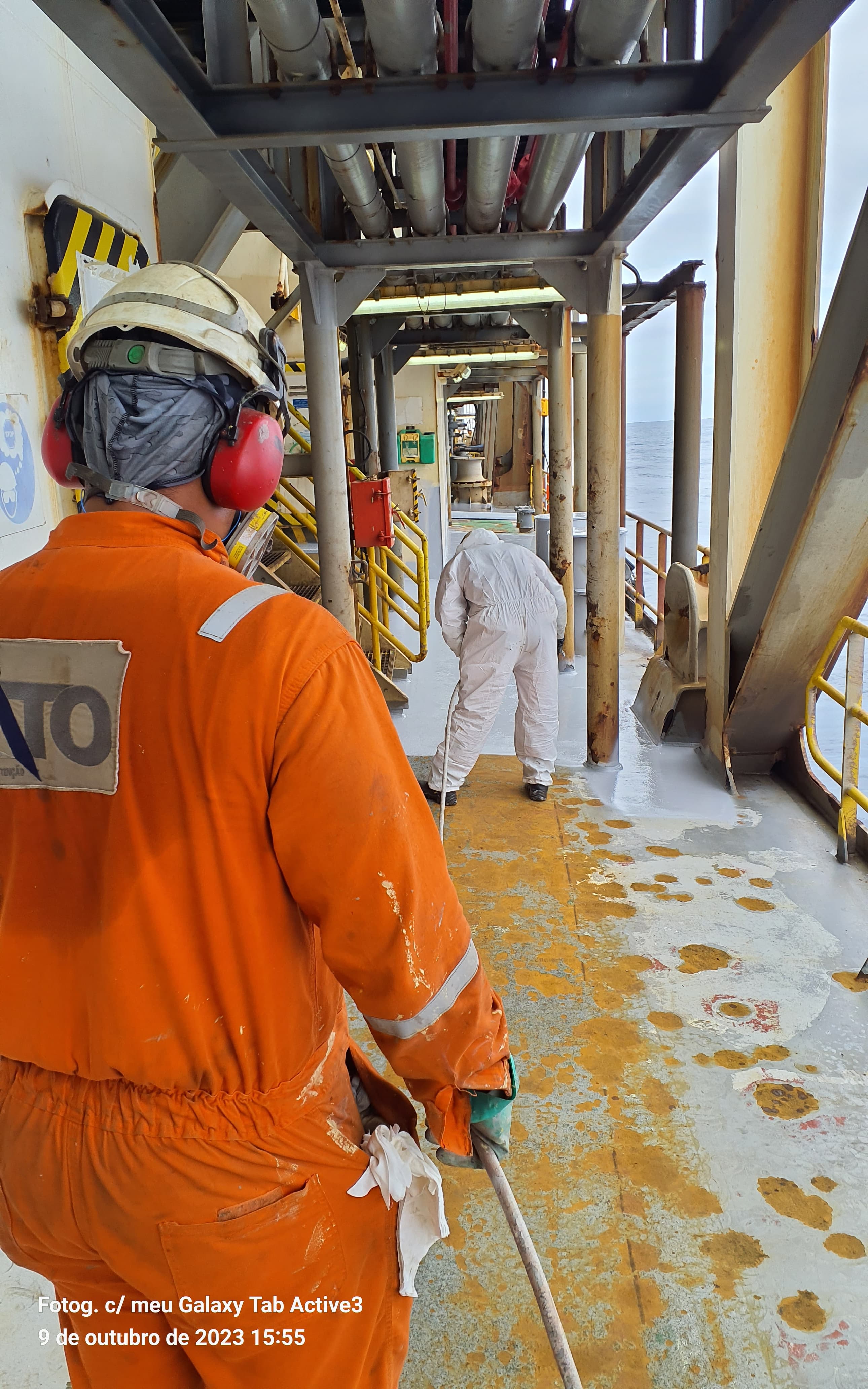 Remoção eficiente de corrosão e outras substâncias aderidas em superfícies metálicas de equipamentos e áreas de plataforma
